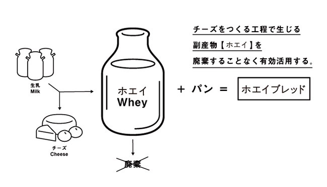 牛乳からチーズを作る工程で生じる副産物「ホエイ」を廃棄することなくパンを作る際の仕込みの水として有効活用。酪農の盛んな栃木・那須エリアだからこそできる価値創造を実現します。