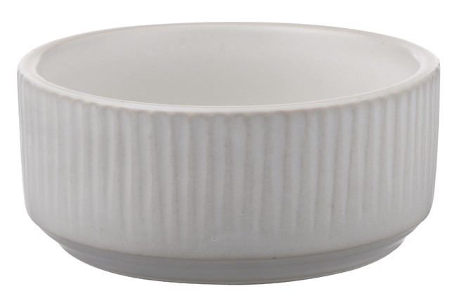 キャンドルは、心身で感じられるぬくもりのある落ち着いた雰囲気を演出します。おそろいのボウルや花瓶セットと同じく、釉薬(ゆうやく)を施したせっ器製で装飾的な溝がデザインされたキャンドルホルダーです。