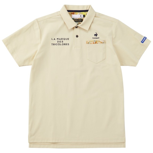 ミュルーズ染織美術館のアーカイブから選んだ花柄を全面に使用したポロシャツ。WH00(ホワイト)はアーカイブ柄に少しアレンジを加え、よく見ると花柄の中に「le coq sportif」の文字が隠れている、遊び心あるデザイン。