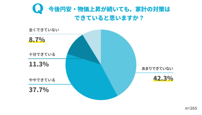 ■円安・物価上昇が続いた場合、約半数の人が家計の対策はできていないと回答