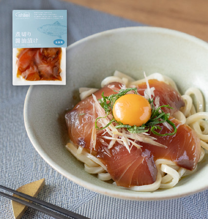 写真では、茹でたうどんに乗っけて簡単&ボリューミーなぶっかけうどんにアレンジしています。