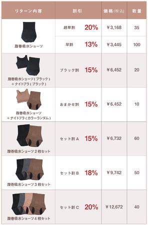 Makuake先行販売では、リターン内容により割引率が異なりますので、ご注意ください。