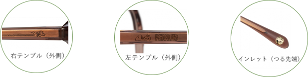 両テンプル外側にスヌーピーと足跡がデザインされており、インレットにもスヌーピーがいます。