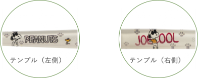右テンプル外側にはウッドストックが、左テンプル外側とインレットにはスヌーピーがいます。