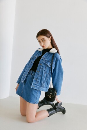 スタンダードながら細部にこだわりを感じさせる定番デニムジャケット。襟のボアは取り外しが可能。