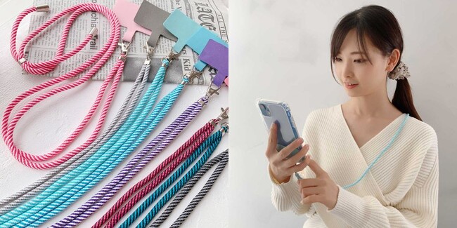 ケーブル差込口ホール付きなら、差し込むだけでどんなスマホケースもショルダータイプでお使いいただけます。便利なだけでなく、可愛らしいポップなカラーはコーディネートのポイントにもなるアイテムです。