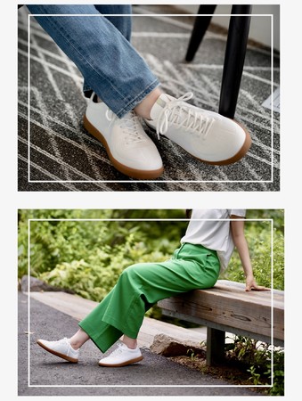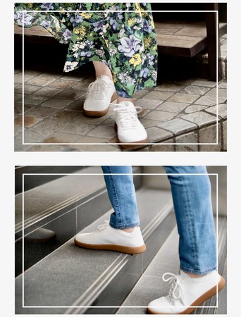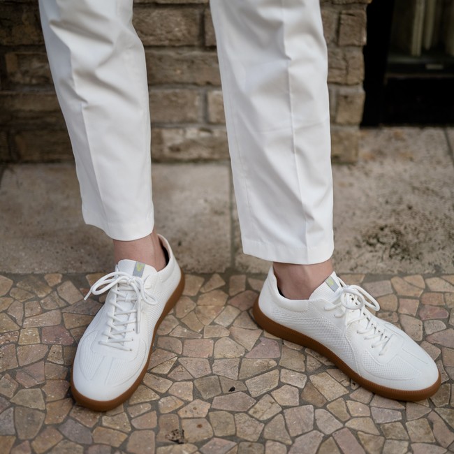 服装を選ばないシンプルなデザインと機能性は、メーカーのフラッグシップシューズであるレザースニーカーを踏襲しています。