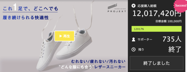 Makuakeで実施した、第1弾のレザースニーカープロジェクトでは、1,200万円を超える応援購入をいただきました。
