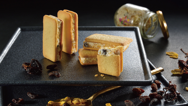 風味豊かな香りのざくざくレーズンサンドクッキー。レーズン入りのホワイトチョコを六甲山麓牛乳を使用したバタークッキーでサンドしましたざくざく食感の中に酸味のあるレーズン、そしてふんわり香るラム酒の香りが味に奥行きを与えています。