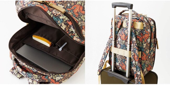 モリスの傑作「Compton」の総柄が華やかで秋らしいリュック。薄型で見た目はすっきりさせつつ、2室構造で整理しやすく収納量も抜群です。ポケットはふかふかで、タブレットやパソコンの持ち運びにも安心です。