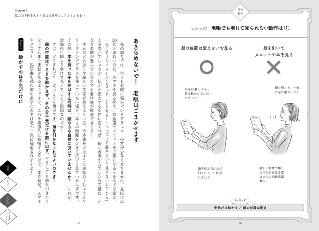 「老けないしぐさ」「若見え所作」のポイントがイラストでわかる、今日から印象年齢ダウンが叶う本!