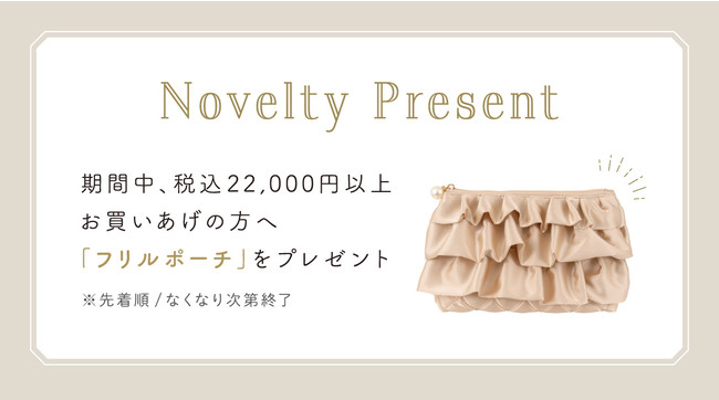 <特典>22,000円(税込)以上お買い上げのお客様へ、「オリジナル フリルポーチ」を差し上げます。※なくなり次第終了