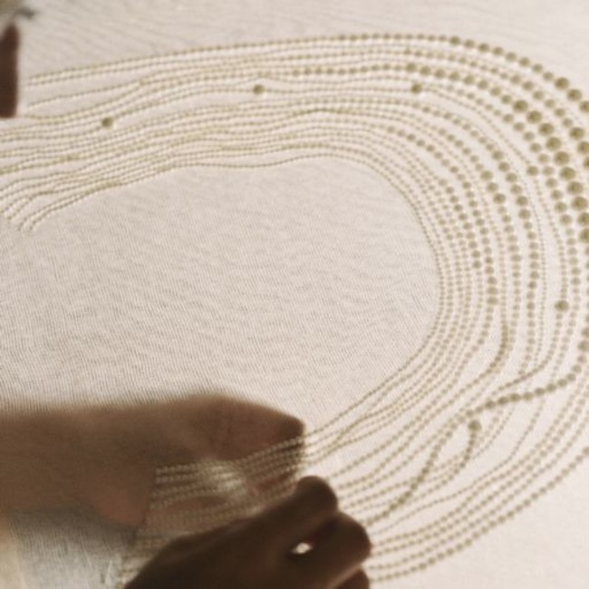 – ドレス 1:ハンカチーフ ウェディングドレスは、タートルネックのコラムドレスに新たにドラマチックなラッフルのヘムを加えたものです。1,000 枚以上のハンドカット ハンカチーフと 500m のファブリックをラッフルに裁断し、手作業で縫い合わせることで、ボリュームのあるロマンティックなスカートを作り上げました。複雑に構成された袖には、タートルネックの背面から肩にかけてドレープするカスケード状のラッフルがはめ込まれ、ロマンティックでヘリテージな感覚を醸し出しています。