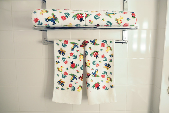 コラボレーションルームのモチーフ『HEIDI(ハイジ)』は、てんとう虫にちょうちょ、小鳥たちや小さな花などドイツの野にいる生き物たちを織り上げた、子どもから大人まで幅広い年代に支持を集める「FEILER(フェイラー)」の人気デザイン。その『HEIDI(ハイジ)』を贅沢にあしらったお部屋で心ゆくまで「FEILER(フェイラー)」の世界に浸ることができます。