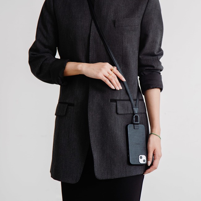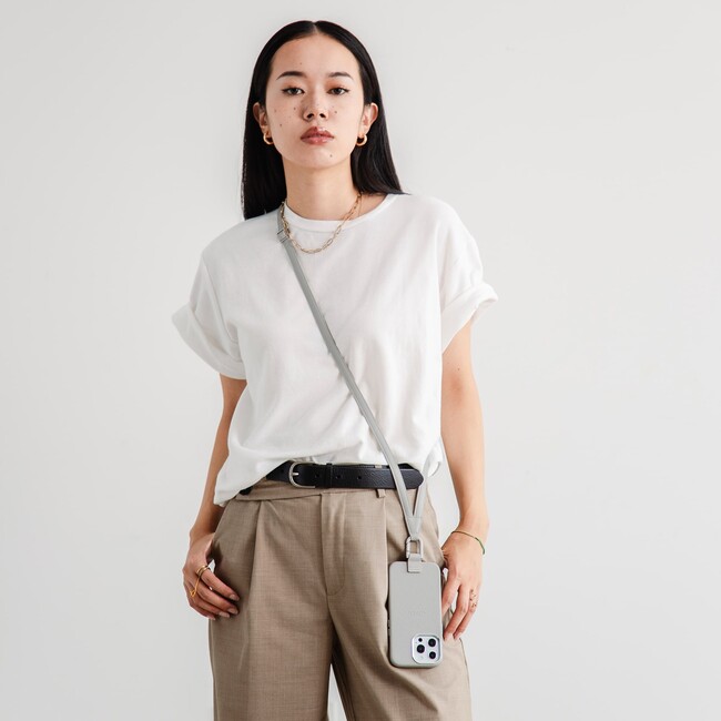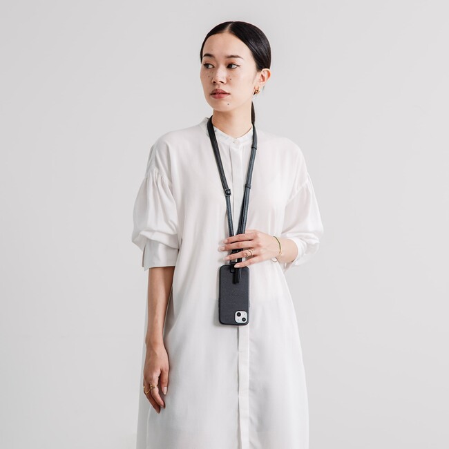 カジュアルな装いからジャケットスタイルまで幅広い服装に馴染む、ウェアラブルなiPhoneケース。ブラックとホワイトベージュの2色展開で8月26日(金)より販売開始。