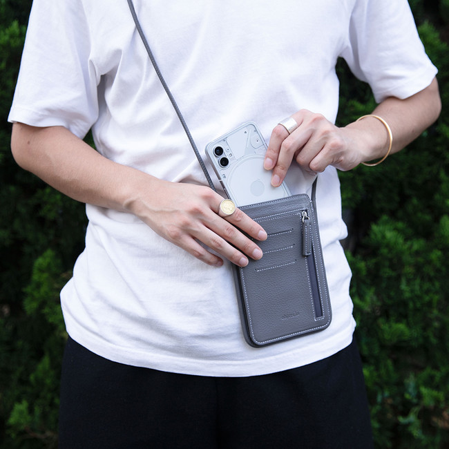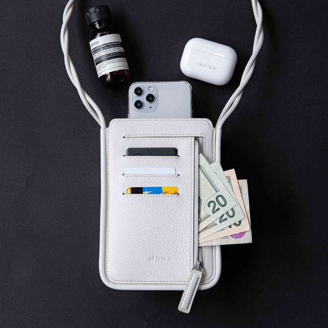スマートフォン + αの荷物を斜め掛けで軽やかに持ち歩くことができる「スマホショルダー」。近所へのちょっとした外出をはじめ、オフィス内などでスマートフォンを持ち歩く際にも役立つアイテム。シャツワンピースなどのポケットがない洋服を着用する際に加え、自転車に乗ったり、ベビーカーを押したりといった両手を空けておきたいシーンで活躍します。そんな手ぶらで身軽な移動を可能にする「スマホショルダー」について、objcts.ioの展開製品をご紹介します。