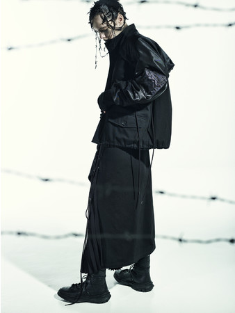 JACKET 127,600 yen SKIRT 74,800 yen LACE UP BOOTS (LIMI feu×Maison MIHARA