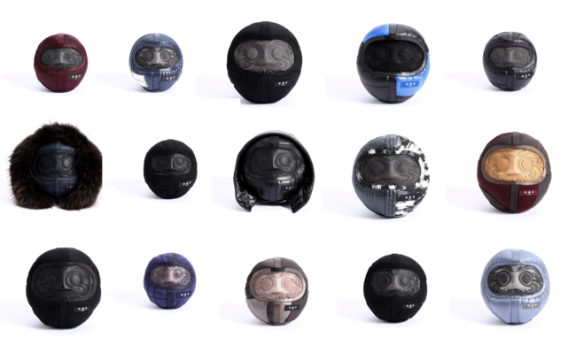 使用したダウンはほつれや破けた箇所のある商品や、店頭に並ばないものを使用し、だるまの命である顔部分には革職人から譲り受けた端切れを用いて、すべて本革で制作。