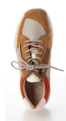 履き口とベロ部には、厚みのあるクッションや柔らかなファブリックとの組み合わせで足あたりがやさしく、また、脱いだ時にもオシャレなアクセントのカラーリングになっています。