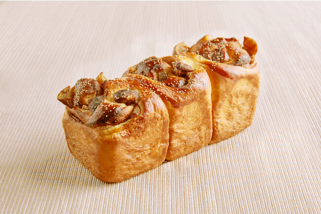 かぼちゃクリームを練り込み、角切りかぼちゃとパンプキンシードをトッピングしてふっくら焼き上げました。ふわふわのパンにたっぷりのかぼちゃとパンプキンシードの食感がアクセント。