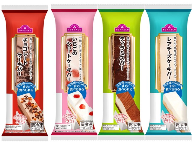 品名:チョコレートケーキバー、いちごのショートケーキバー、ティラミスバー、レアチーズケーキバー