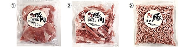 品名:1.国産豚肉小間切れ 200g 2.国産豚肉細切り 200g 3.国産豚ミンチ 200g