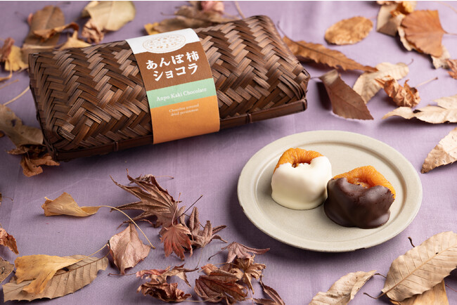 「堀内果実園」で収穫した柿をあんぽ柿にし、チョコレートと合わせた和菓子と洋菓子のコラボレーション。口溶け滑らかなチョコレートは、あんぽ柿の優しい甘さを引き立て、やみつきになる味わいを演出します。