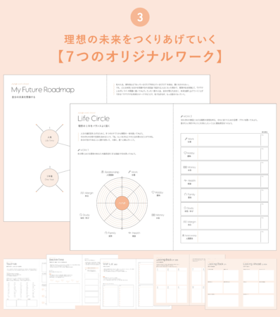 コーチング・心理学を専門とするメンバーが作り上げたオリジナルワーク。「何がしたいか分からない」「未来をイメージするのが苦手」という方も、ワークを通して自分の心と向き合い、理想の未来をつくりあげていくことができます。