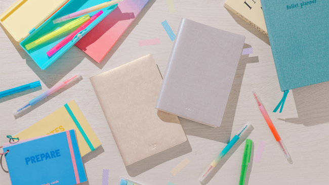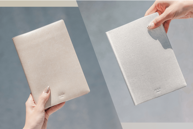 手帳カバーは光沢感がある洗練された二色のカラー展開で、シチュエーションを選ばず使うことができます。紙は、裏写りせずなめらかに書くことができる素材を使用しています。