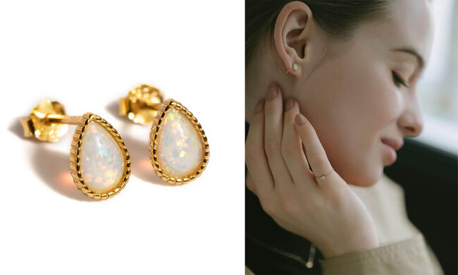 ドロップモチーフ(約):縦7.6mm × 横5.3mm × 厚み2mm(オパール部分含む)