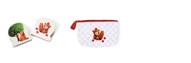 〈ビッグウッドクリップ2個セット〉は、それぞれこぐまとお母さんぐまが描かれています。大きめサイズのクリップなので、お菓子の袋の口を止めたり、メモ用紙をまとめたり、幅広く活用できます。〈タッセル付きポーチ〉は、コスメや文房具、バッグ内のこまごまとしたものを入れたりとマルチに使える大きさのポーチです。