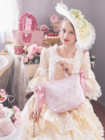 『Les Liens ~レ リアン~』の中でも一押は、“ロココ” をテーマにしたシリーズ。ロココ調の優雅で可愛らしいイメージをMaison de FLEURの世界観で表現しました。ドレスのようなジャガード生地やリボン使い、華やかさをプラスするビジュー、レースなどをふんだんに取り入れ、Maison de FLEURの人気アイテムに落とし込みました。全アイテムをパステルカラーで統一し、ロココ調の雰囲気に仕上げました。