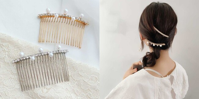 違う種類のヘアアクセサリーと重ね付けしたり、一つだけ使用してアレンジしても華やかさをプラスしてくれるヘアコーム。