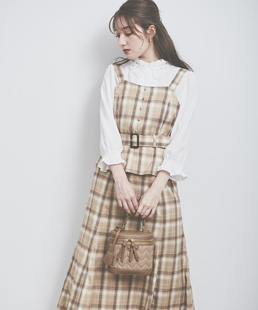 ビスチェをスカートイン・アウトどちらでも合わせやすい、取り外し可能なウエストベルト付き。