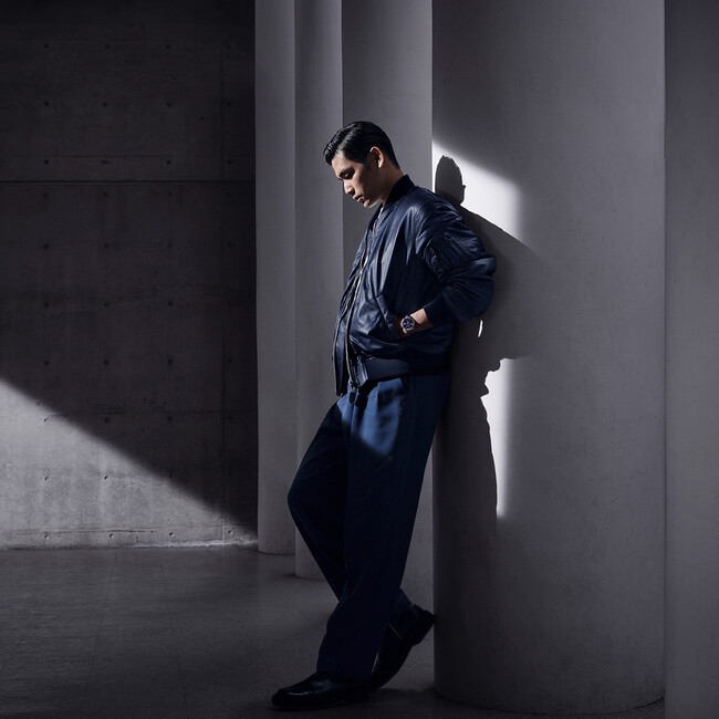 豊富な経験の中で洗練された所作や佇まいから香り立つ大人のエレガンス。本木雅弘さんが纏うのは、ロンジンのフラッグシップライン“ロンジン マスターコレクション”の中でもロンジンのクラフツマンシップを象徴する最高峰モデル。月の満ち欠けを表示するムーンフェイズやクロノグラフなどの複雑機構を搭載。光によって異なる表情を見せるサンレイ加工のシックなブルーの文字盤など、知性とエレガンス、ウォッチメイキングのロマンが体現されたタイムピースです。