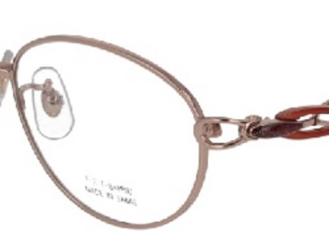 金属素材と樹脂素材の異素材からなる曲線が立体的に交差しており、やわらかくお顔にフィットする機能性があるフレームになっています。テンプル(ツル)にはステンド七宝を施し、より彩り豊かな印象を与えることができます。