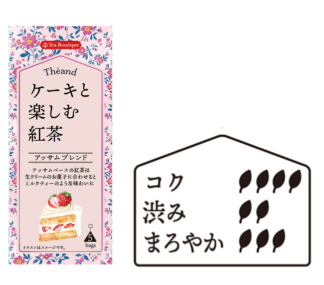 コク深くまろやかな味わいのアッサムをベースに相性の良い紅茶をブレンド。ケーキと一緒に飲むと生クリームやバターと合わさり、ミルクティーのような濃厚な味わいに。後味に程よい渋みもあり、ケーキの甘さをすっきりとさせます。