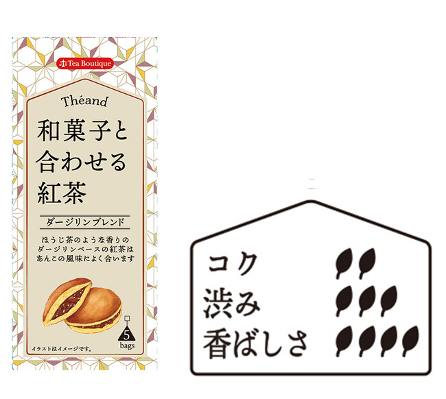 ほうじ茶のような香ばしさが特徴のダージリンや国産和紅茶を使用。あんこのどっしりとした甘さと調和する、和菓子と相性抜群の紅茶。