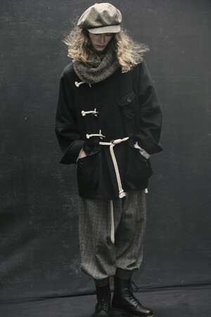 どこか根底に、常にロックミュージックが流れている“S 'YTE DERICK”な世界。ウールやチェックツイードなどの布帛を組み合わせたアイテム、これらにキルティング、モヘアニット、リブ切り替えプリーツスカート付きパンツなどをコーディネートした、全体に渡ってレザーにスポットを当てたコレクションとなっています。
