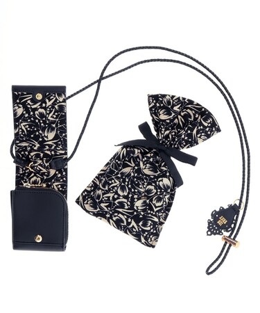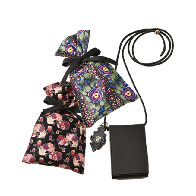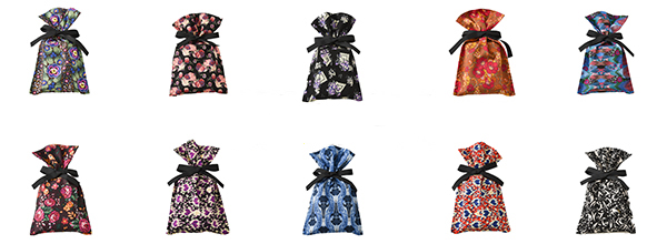 裏地が無地の商品には、色イメージに合わせた柄の巾着が付きます。