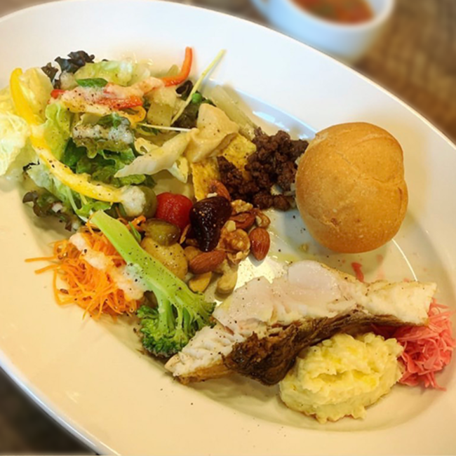 日替わりのメインと数種類の副菜が一緒に味わえる。