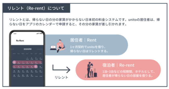 帰らない日は家賃がかからない料金システム「リレント」