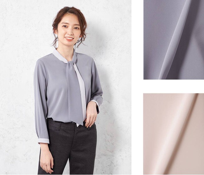 カラー:配色クルーネックブラウス ベージュ、ラベンダー/配色リボンタイブラウス ベージュ、ブルー