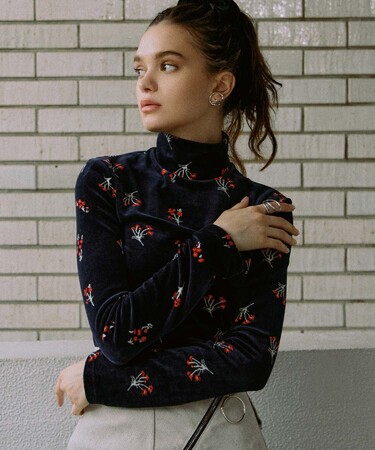 FLORAL VELOUR JACQUARD HIGH NECK TOP