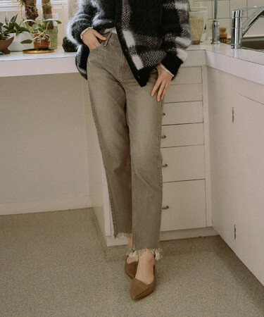 カットオフの裾が今季おすすめのポイント。温かなブロンズカラー“ミンク” がスタイリッシュな大人のムードで、カジュアルにもキレイめにも好相性にマッチ。