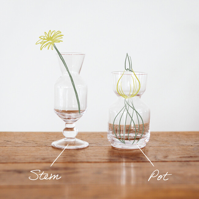 サイズ(mm/約):【stem】高さ 150、口部内径 45、最大直径 60【pot】高さ 120、口部内径 56、最大直径 73