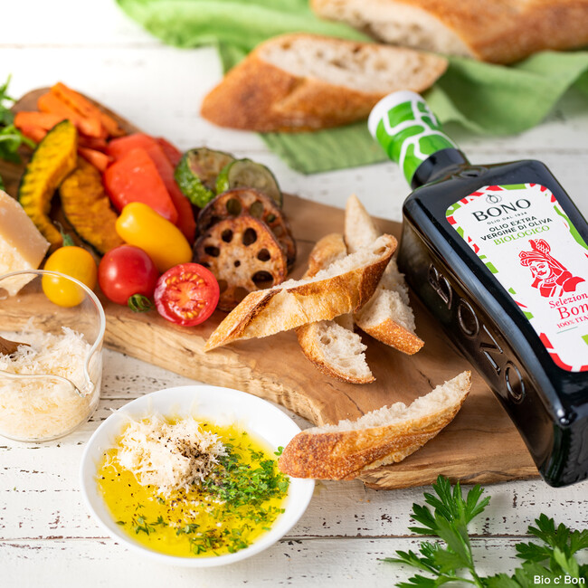 ボノはイタリア・スチャッカで1934年に創業し、1999年にオーガニックオリーブオイルを作り始めました。原材料は、独自の選定基準を満たしたイタリア国内の仕入先からのみ安定的に調達することで、より日常使いしやすい価格を実現しています。