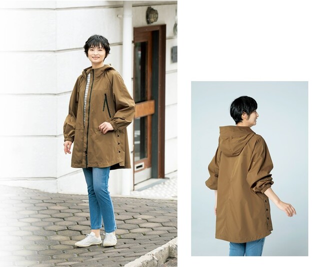 天然素材のような風合いを備えた軽やかな高密度ポリエステル素材の撥水コート。シンプルに削ぎ落とされたデザインのダブルカラースタイルで、アームホール下にマチを入れた変形のラグランスリーブがゆったりとした着心地を叶えます。