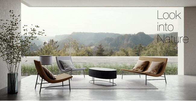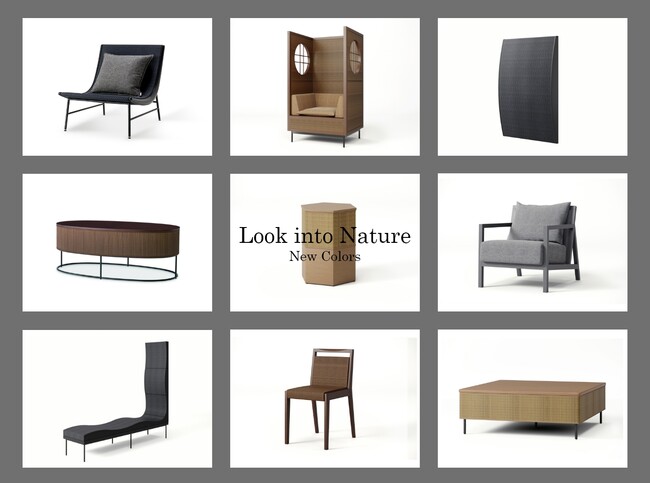 今一度、この自然観に着目し、環境との関わり合いの中で、自らの行動や所作も風景の一部となる物の在り方を、《Look into Nature》という言葉によせて設定しています。また、”い草”のカラートーンと編み方も、より空間との調和が図れるよう刷新致しました。
