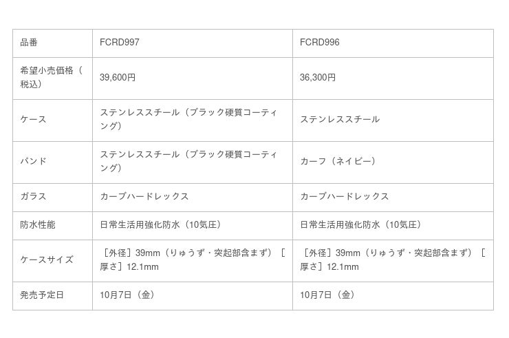 【FCRD997/FCRD996/FCRD703 ムーブメント仕様】